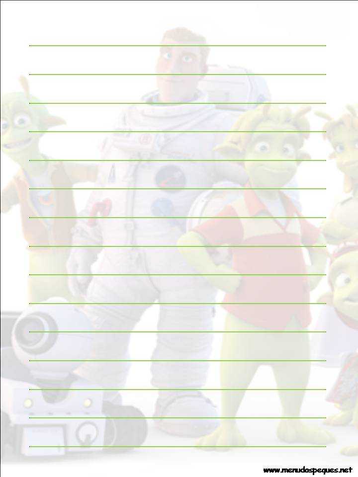 Papel para Cartas, de Planet 51, listos para imprimir, y escribir a tus amigos.